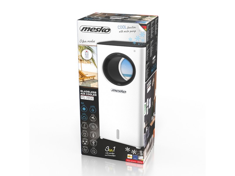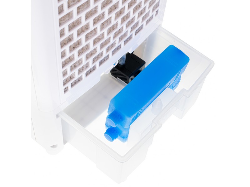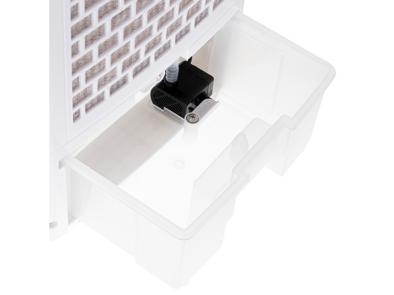 A multifunctional highly efficient air cooler. Its functions of cooling, purifying and air humidification make it a great equipment for every office or studio. The user can choose between 3 speeds of ventilation. The air cooler is equipped with a built-in water tank of 2l, thanks to which it can provide air humidification even for a few hours. For the user´s comfort the device is equipped also with a remote control that allows to control the air cooler from the distance. Due to a built-in timer the device can be set for a specific time of work. The cooling function, based on an innovative technology that uses evaporation, lowers the temperature thanks to the water pump while moistening the dry air, especially in blocks of flats. The airflow is 188.4 m3/hour.