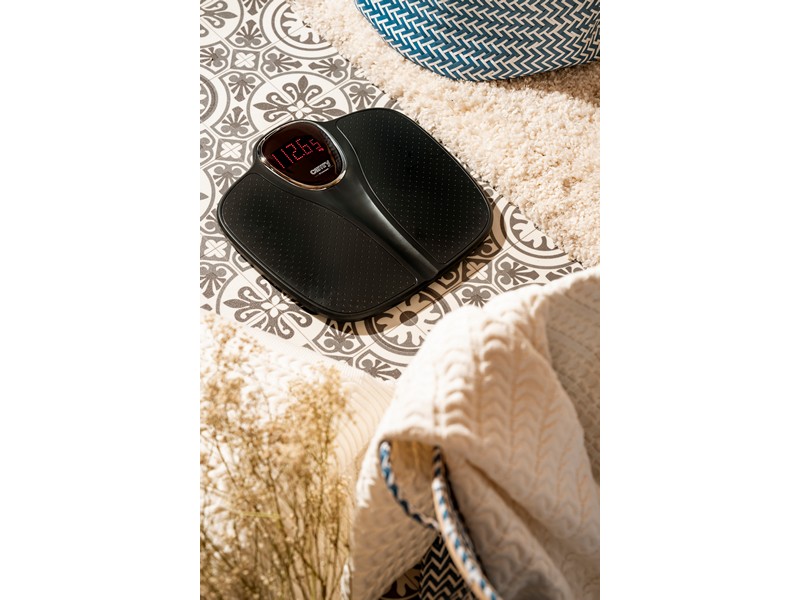 Uma balança de casa de banho muito precisa, com capacidade máxima para 180 kg. Uma excelente escolha para atletas, pessoas em dieta e qualquer outra pessoa que se preocupe com a sua massa corporal. A plataforma é feita de um material resistente e seguro, conferindo-lhe um visual atraente. A sua alta precisão (50g) permite obter medições muito precisas. A balança está equipada com a função automática de "zero" e indicadores de "baixa potência" e "sobrecarga". O desligar automático contribui para a poupança de energia e aumenta o conforto de utilização. Além disso, o ecrã é bastante legível, facilitando a leitura das medições. A balança de casa de banho também possui o modo de pesagem de bebés.