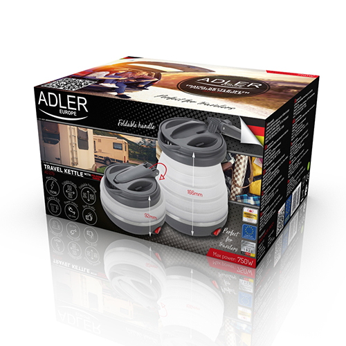 É difícil imaginar um café da manhã sem o seu chá ou café aromático favorito, necessário para começar o dia com energia. Nas férias, é especialmente difícil funcionar sem água quente, necessária, entre outras coisas, para preparar o destaque de todas as férias: refeições instantâneas! O chaleira de viagem ADLER AD 1279 é o produto ideal para aqueles que passam muito tempo em terrenos ou em viagens, seja de férias ou a negócios. Graças às soluções modernas, a chaleira é adequada tanto para acampamentos quanto para quartos de hotel. O que é importante, especialmente em viagens, é que ela não ocupa muito espaço na bagagem! Ela foi equipada com uma alça dobrável para ocupar ainda menos espaço e uma bolsa de material que facilita o armazenamento.