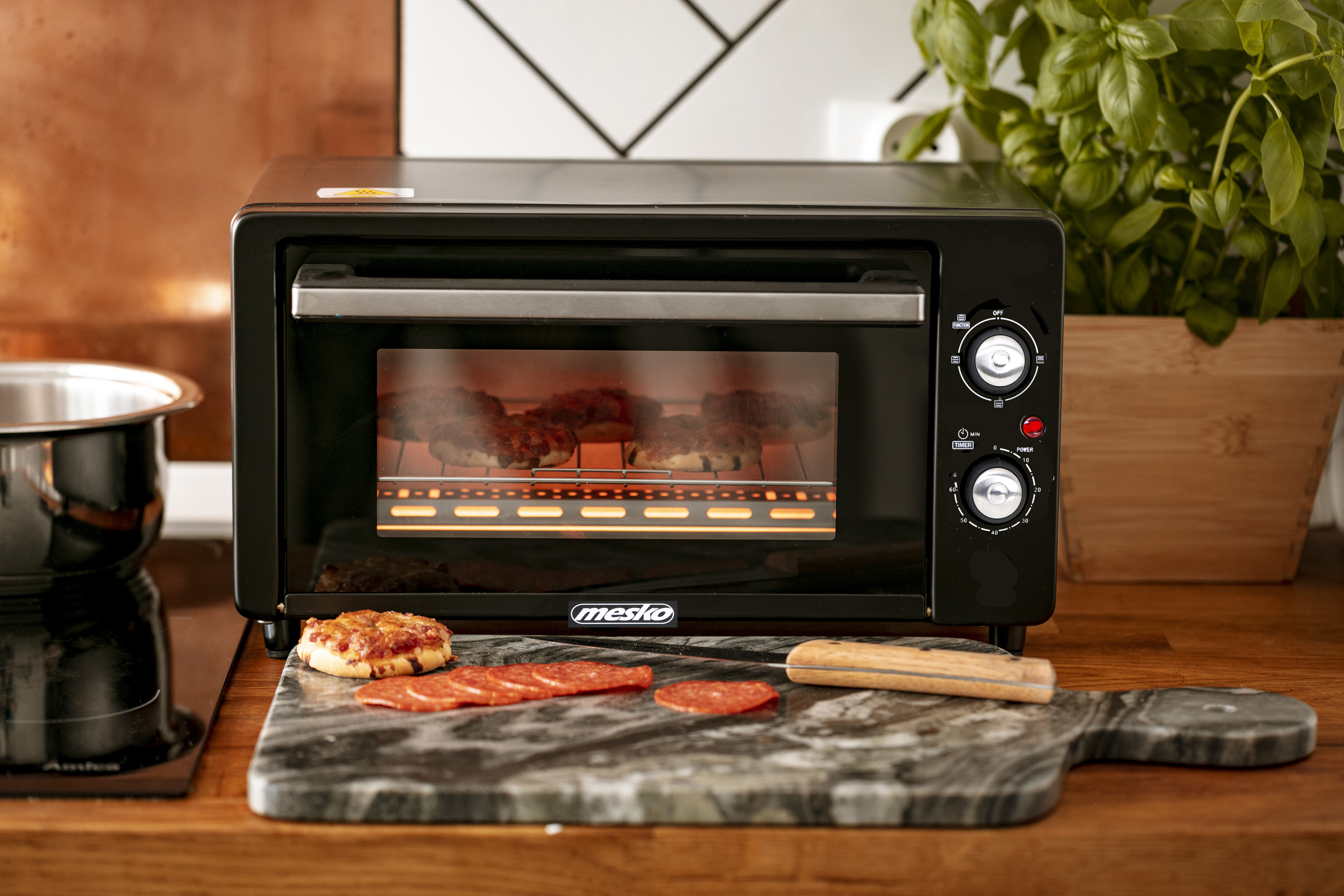 Forno eléctrico de alta qualidade com grelhador e tabuleiro para assar. Permite preparar carne assada, bolos e outros pratos que requerem temperaturas elevadas. O forno permite escolher o modo de aquecimento: de baixo, de cima ou ao mesmo tempo de baixo e de cima. Os elementos de aquecimento foram feitos de um quartzo, o que os torna duráveis e fiáveis. Graças a um temporizador, o utilizador é informado quando passa um certo tempo. Por conseguinte, é muito menos provável que queime o seu prato. Forma fácil de limpeza, abrindo a parte inferior do forno.