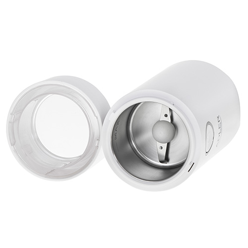 O moinho de café AD 4446 é um equipamento de cozinha indispensável para pessoas que apreciam o sabor único do café e não conseguem imaginar uma manhã, uma pausa à tarde no trabalho ou um encontro à noite com amigos sem ele. O moinho tem uma capacidade de 75 g, o que permite moer a quantidade perfeita de café para que não perca o seu aroma, está equipado com uma tampa que retém o aroma para garantir que o café moído possa ser utilizado por várias pessoas. A potência máxima de 150 W significa que o café será moído rapidamente, sem a necessidade de moer os grãos por muito tempo.